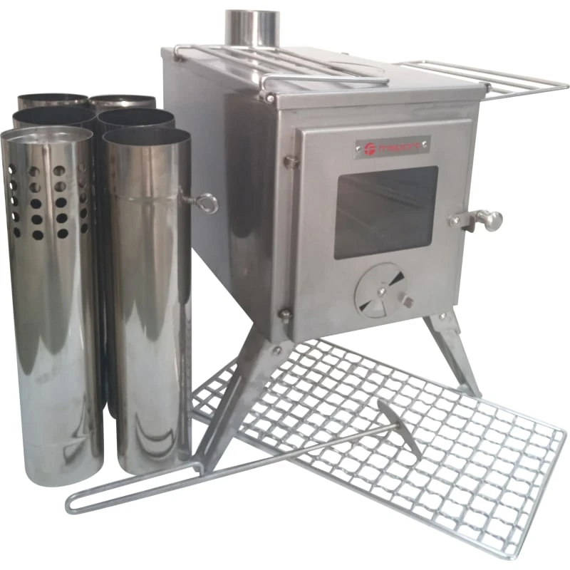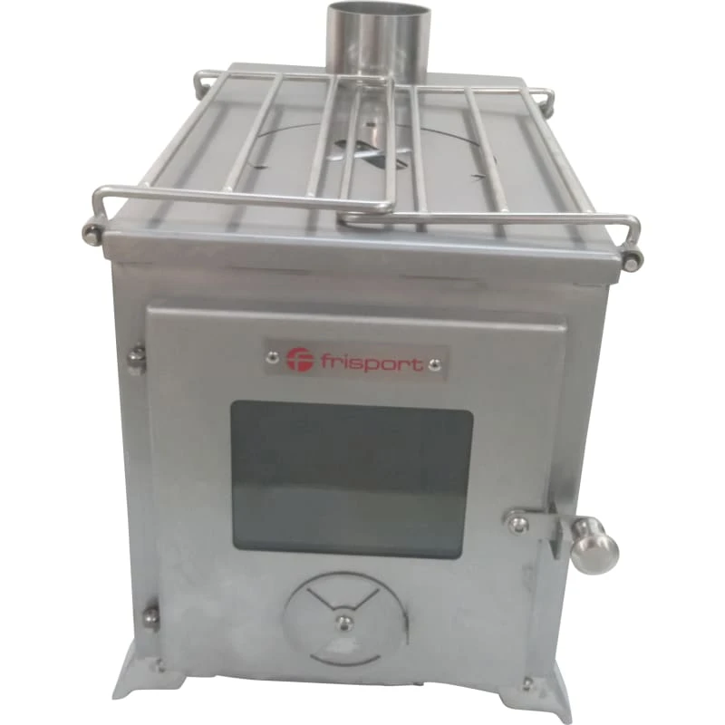 6000 Large Ovn fra Frisport er en solid vedovn til bruk i lavvo, helårstelt og gamme. Ovnen er laget i rustfritt stål og har en varmeeffekt på 6,5kW. Den er utstyrt med bærehåndtak, innfellbare ben og piperør som lagres inne i brennkammeret for enkel transport. Komplett ovn har total vekt er 14,9 kg.