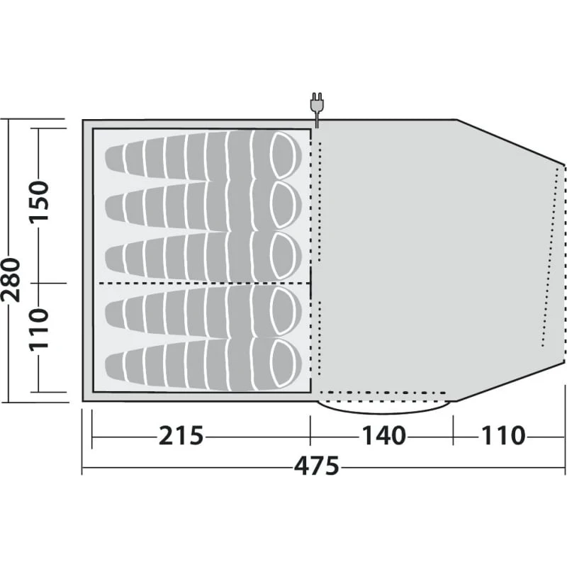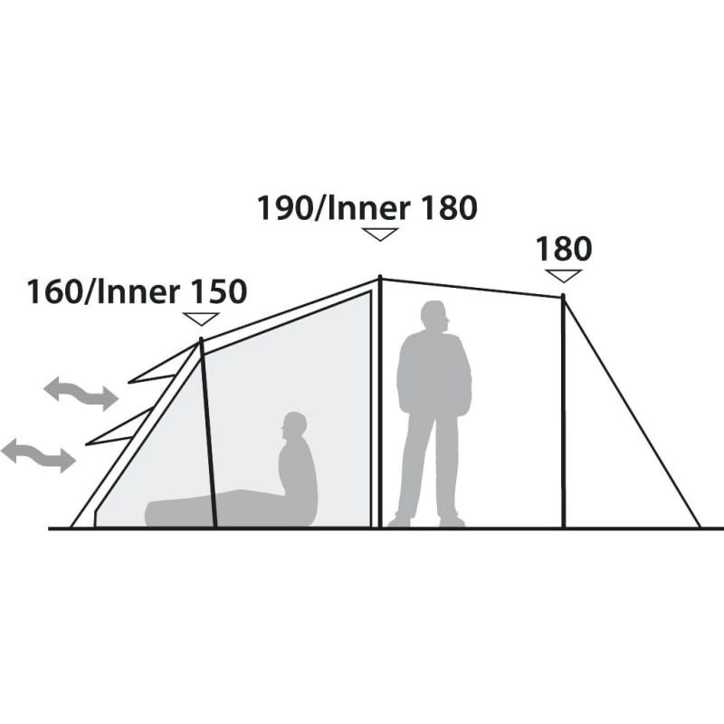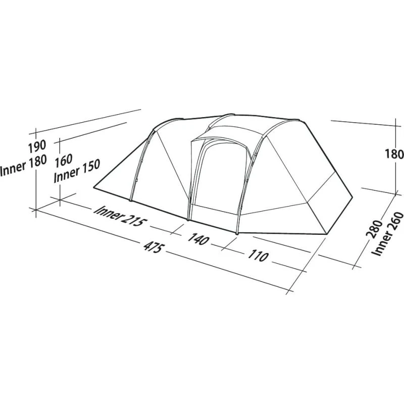 | Innertelt mål: | 215 x 260 x 180/150 cm |